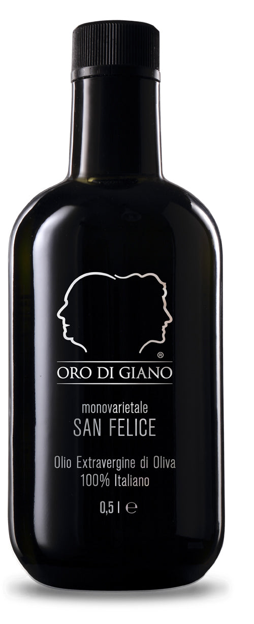 Das Olivenöl von Oro di Giano ist eine meisterhafte "Monovarietale" Herstellung aus der Olivensorte San Felice hergestellt wird, die ausschließlich in Umbrien wächst und ist als seltene und geschätzte Olivensorte eingeordnet. Diese sortenreine Herstellung verleiht dem Öl einen unverwechselbaren Charakter, kraftvoll und elegant zugleich.