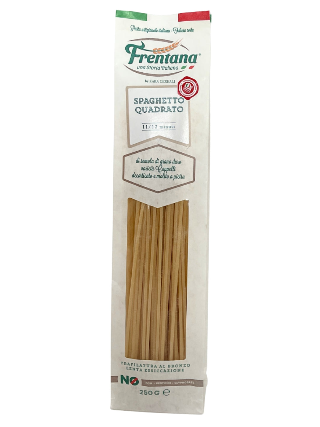 Spaghetti Quadrati z pszenicy durum Senatore Cappelli od Frentana to wyjątkowa odmiana klasycznych spaghetti, wyróżniająca się kwadratowym kształtem. Ta forma nadaje makaronowi niepowtarzalną konsystencję i sprawia, że sosy doskonale do niego przylegają. To idealny wybór dla miłośników tradycyjnej „Pasta alla Chitarra” oraz doskonała baza do dań z delikatnymi sosami mięsnymi, które podkreślają jego teksturę i smak.